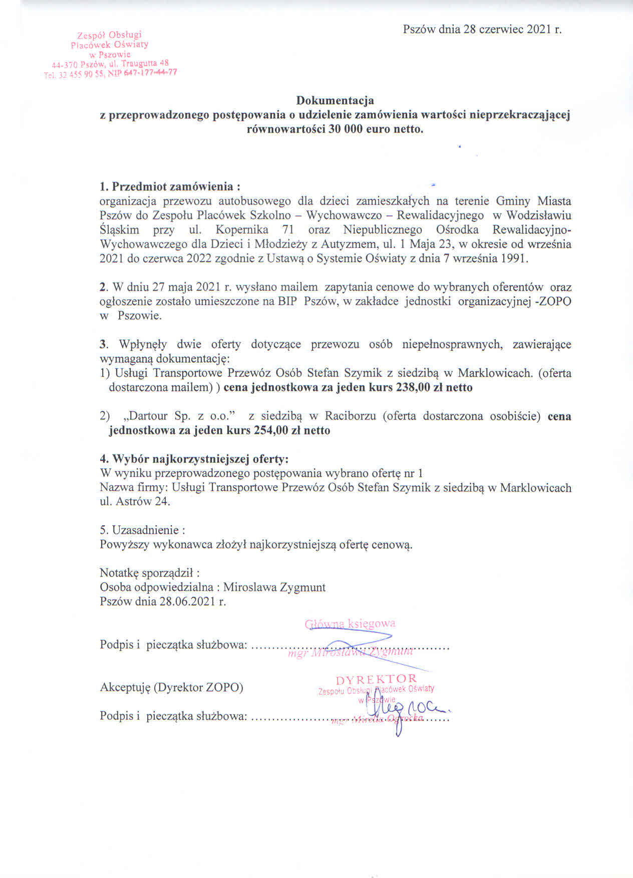 Sprostowanie do zapytania ofertowego z dnia 06.06.2022 r dotyczącego przewozu dzieci do Zespołu Placówek Szkolno-Wychowawczo-Rewalidacyjnych oraz Niepublicznego Ośrodka Rewalidacyjnego dla Dzieci i Młodzieży z Autyzmem.